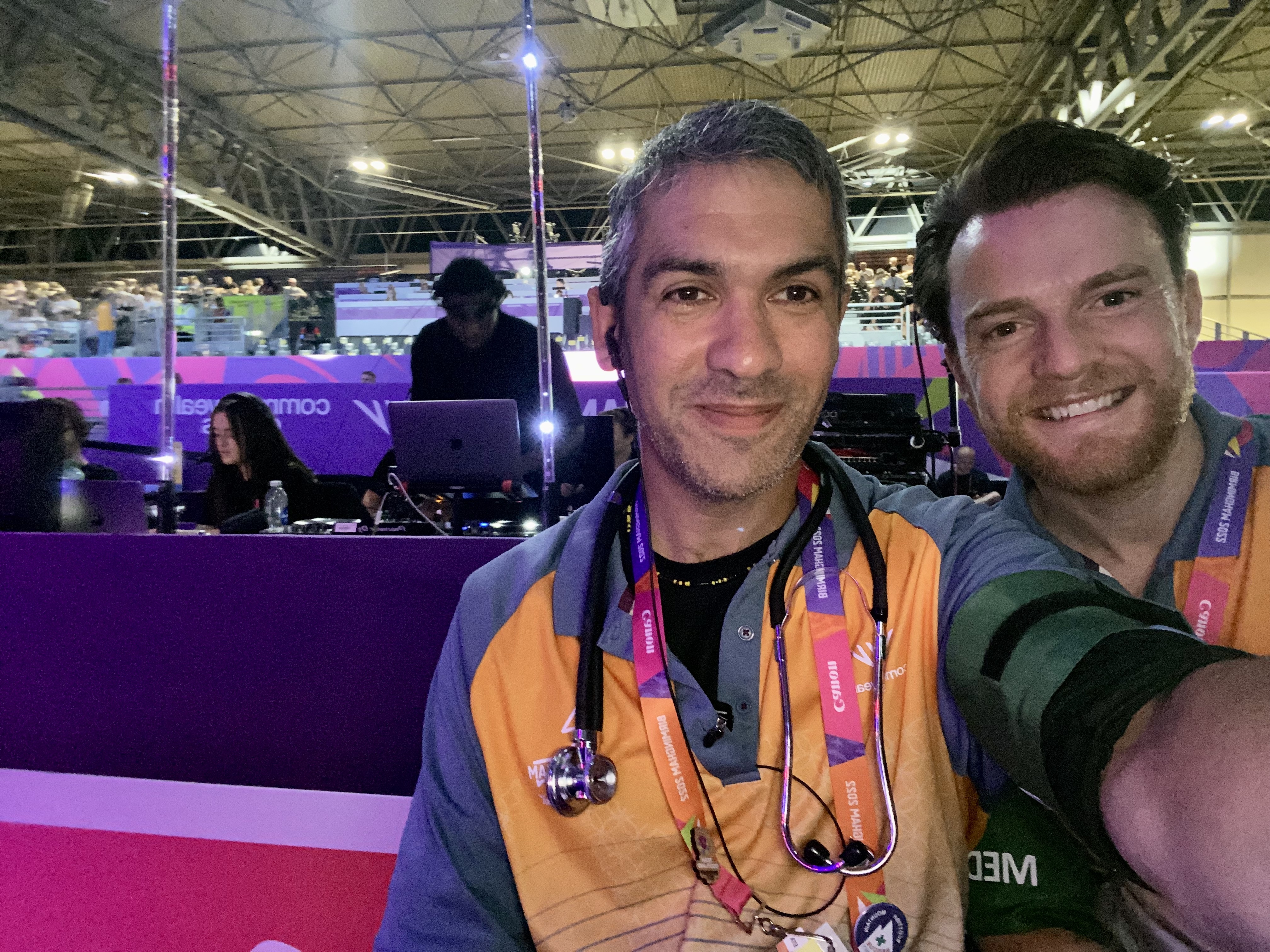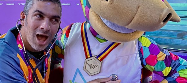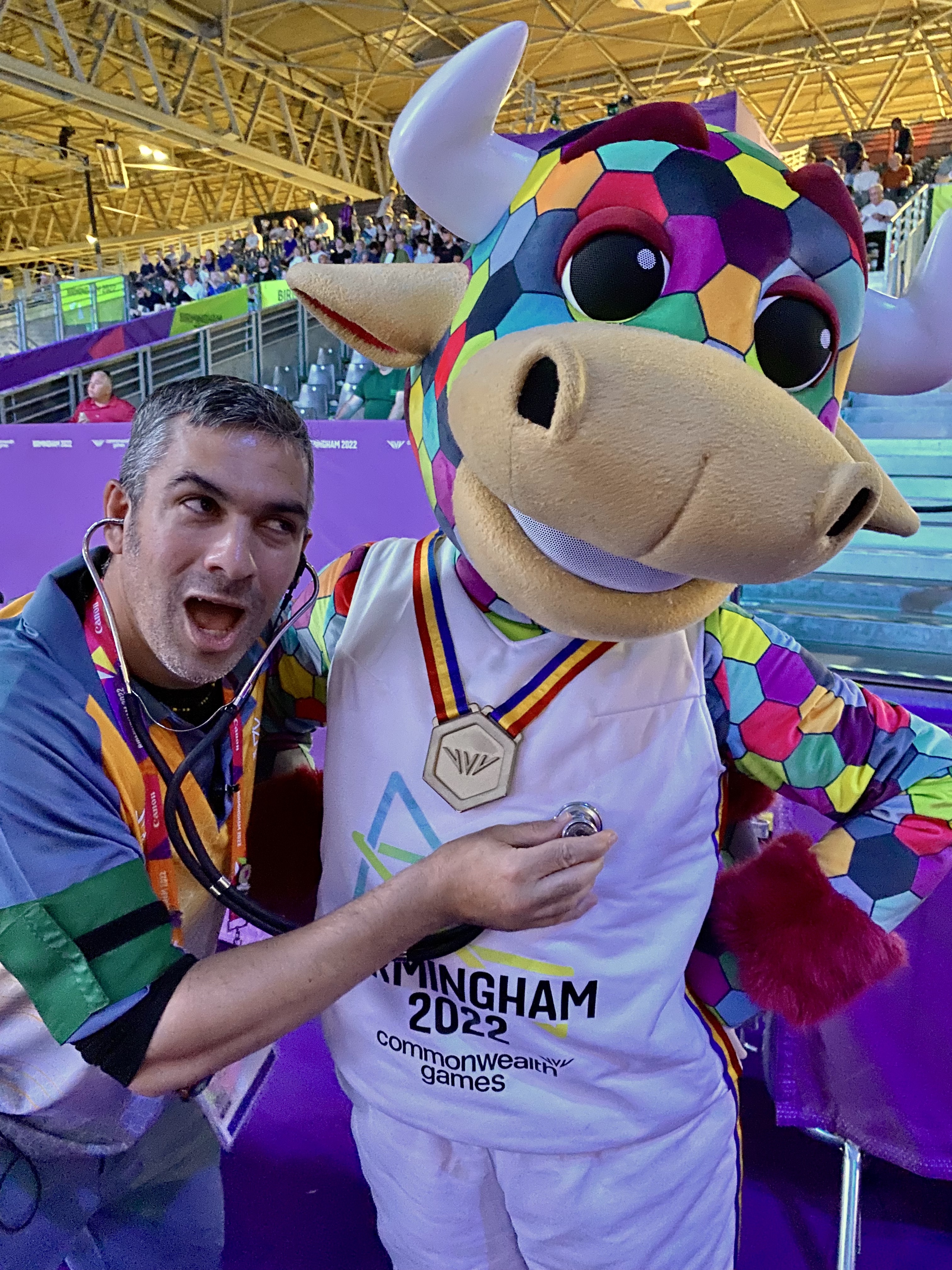 For the rest of the games, I got to work with some amazing people from all walks of life, including athletes, healthcare professionals, actors, prop technicians, security, accreditation team, catering team, games makers and many more…including the legendary Perry the Bull. During events, we were up and close to the action. My role on the field of play was Field of Play Team Leader (FoPTL), the medical team providing care to athletes. At the start of every shift, we would have a team brief to ensure who was present and what skills were available. We would then have a multidisciplinary discussion and simulation with healthcare professionals directly employed by the Birmingham 2022 Games organisation and the emergency services team provided by West Midlands Ambulance Service. This was essential to ensure that we could provide care seamlessly should it be required. As a spectator clinician (SpC), my role was similar to those working in an emergency department in a makeshift medical room. As a roving doctor, I would carry a radio and walk around a pre-defined venue area. This would allow me to be dispatched quickly to a referral from the area I was patrolling. If called, I would conduct a primary assessment and liaise with the game’s medical control room to discuss the next steps. This would be to plan whether the patient should be transported to the medical room for further assessment or to the local hospital via ambulance.